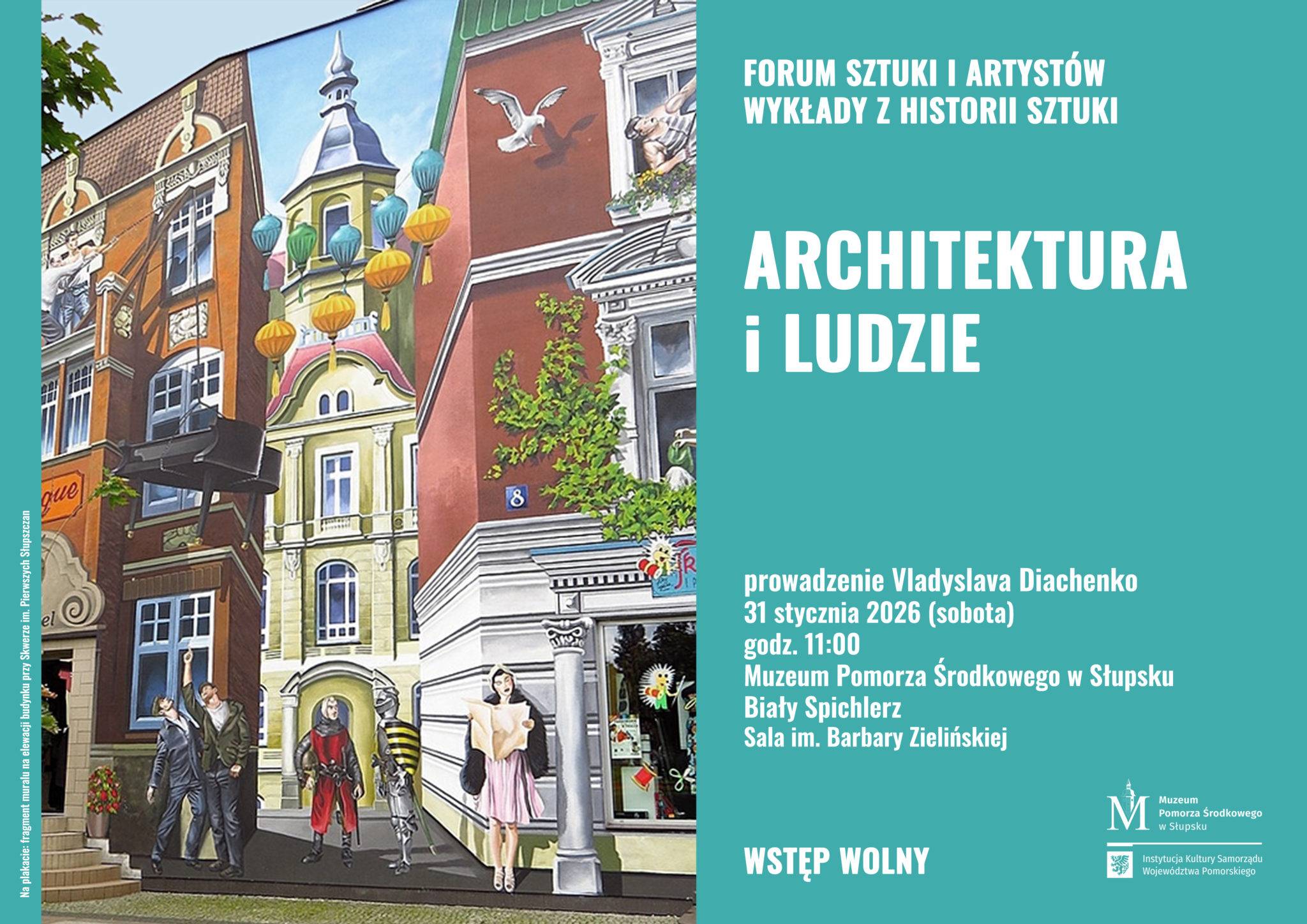 Tematem wykładu jest architektura w kontekście zabudowy starego Stolpu i nowego Słupska oraz jej charakterystyczne elementy. Prowadzający dokona porównań z architekturą całego Pomorza i świata z naciskiem na biografie architektów i artystów związanych z tymi budynkami oraz słynnych bohaterów historii i kultury uwiecznionych w pomnikach na terenie miasta.