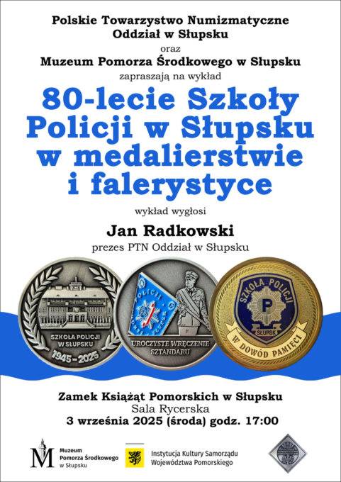 Zapraszamy 3 września 2025 o godzinie 17:00 do zamku na wykład Jana Radkowskiego, prezesa naszego zaprzyjaźnionego PTN Oddział w Słupsku pt. „80-lecie Szkoły Policji w Słupsku w medalierstwie i falerystyce”.