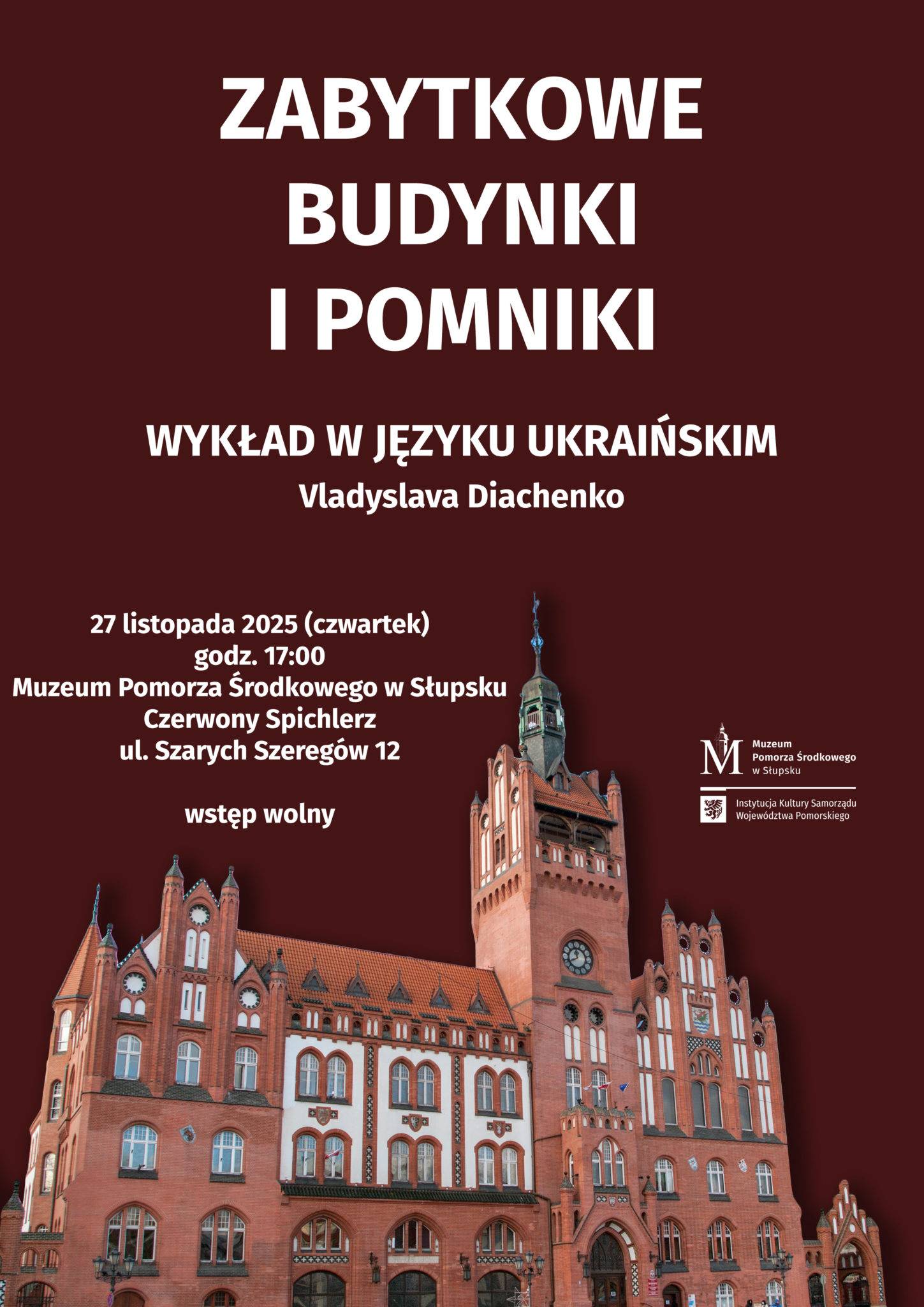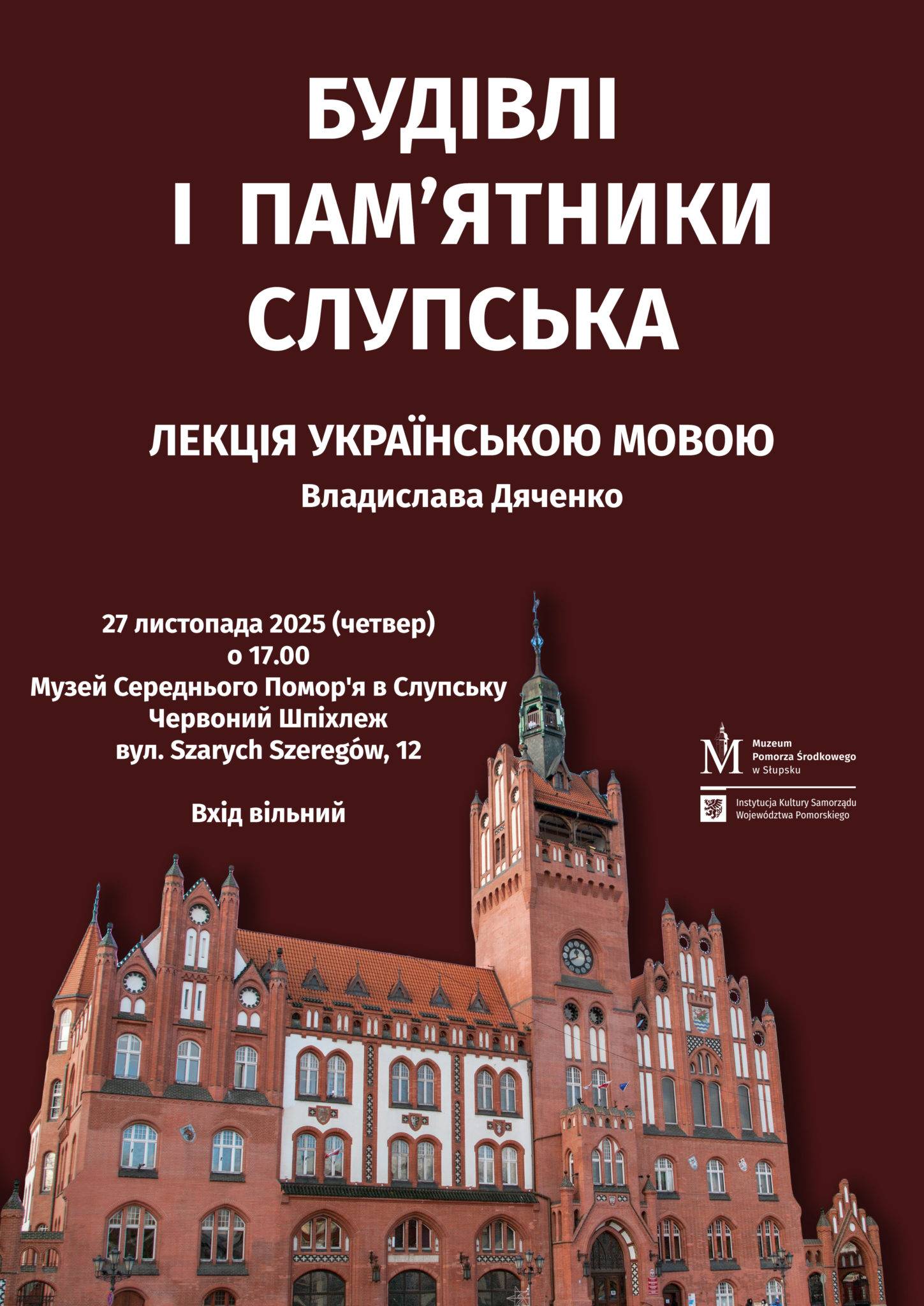 Розвиток архітектури та будівництва Слупська від Середньовіччя до наших днів стане темою майбутньої лекції. На тлі історичної архітектури міста будуть представлені будівлі та пам’ятники, які пов’язані з життям відомих мешканців Слупська — військових, художників та письменників, — а також релігійні споруди, що становлять символічне серце Слупська. Зміни архітектурних стилів, які відображені в найстаріших будинках, надають сучасному місту неповторних рис.